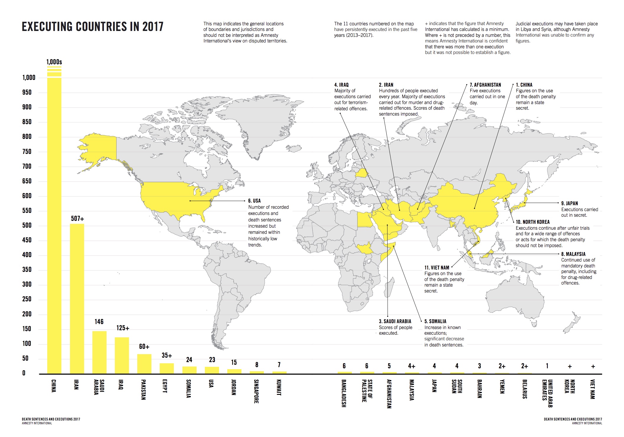 Amnesty International, Global Report: Death Sentences and Executions 2017, released April 12, 2018; Amnesty International, Web Summary: Death Sentences and Executions 2017, April 12, 2018; Amnesty International, The Death Penalty in 2017: Facts and Figures, April 12, 2018.