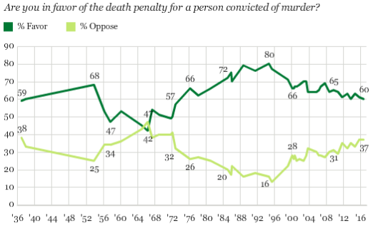 Gallup Poll: Support for Death Penalty at Lowest Level Since 1972