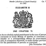 On November 8, 1965, 50 years ago, the United Kingdom abolished capital punishment. On that date, Parliament transmitted to Queen Elizabeth II for royal assent the Murder (Abolition of Death Penalty) Act of 1965. The Act, which ended capital punishment in England, Wales, and Scotland subject to Parliamentary review after 5 years, took effect on November 9, 1965. When Parliament confirmed the Act in December 1969, the abolition of capital punishment in the United Kingdom…