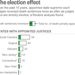 A Reuters analysis of more than 2,000 state Supreme Court rulings in capital cases has found that elected judges are much less likely to overturn death sentences than judges who are appointed. In the 15 states in which the state Supreme Court is directly elected, justices overturned death sentences only 11% of the time as compared to a 26% reversal rate in the 7 states in which justices are appointed. 15 states have a hybrid system, where justices are initially…