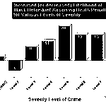 But in the “mid-range” of severity (or aggravation), race plays a very significant role. When cases were ranked from 1 to 8 in increasing severity, cases in categories 1 (least severe) and 8 (most severe) showed little or no discrimination against black defendants. But in the middle categories 3 through 7, the disproportionate treatment of black defendants, as compared to all other defendants, was quite pronounced. For example, in cases of level 5 severity, 25% of the black defendants received the death penalty, but only 5% of the other defendants received death, and the difference between these sentencing rates is 20 percentage points. At level 6 severity, the difference was 15 percentage points, and at level 4 severity, the difference in death sentencing rates was 11 percentage points higher for black defendants. These results are summarized in the graph below.