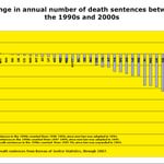 In 2008, DPIC conducted a comparative analysis of death sentences imposed across the United States in the 1990s versus the first decade of the 2000s. We found that, on a percentage basis, death sentences in the country dropped 62% between 1998 and 2007. Doubts about the reliability of the death penalty coupled with the availability of life-without-parole sentences likely contributed to that drop. The overall drop in death sentences during the 2000s occurred even though the murder rate remained approximately constant during the seven years of the decade that we studied. In 2007, the last year for which data were available, the national murder rate was 5.6 murders per 100,000 people, a small decrease from 5.7 in 2006 and a small increase from 5.5 in 2000.