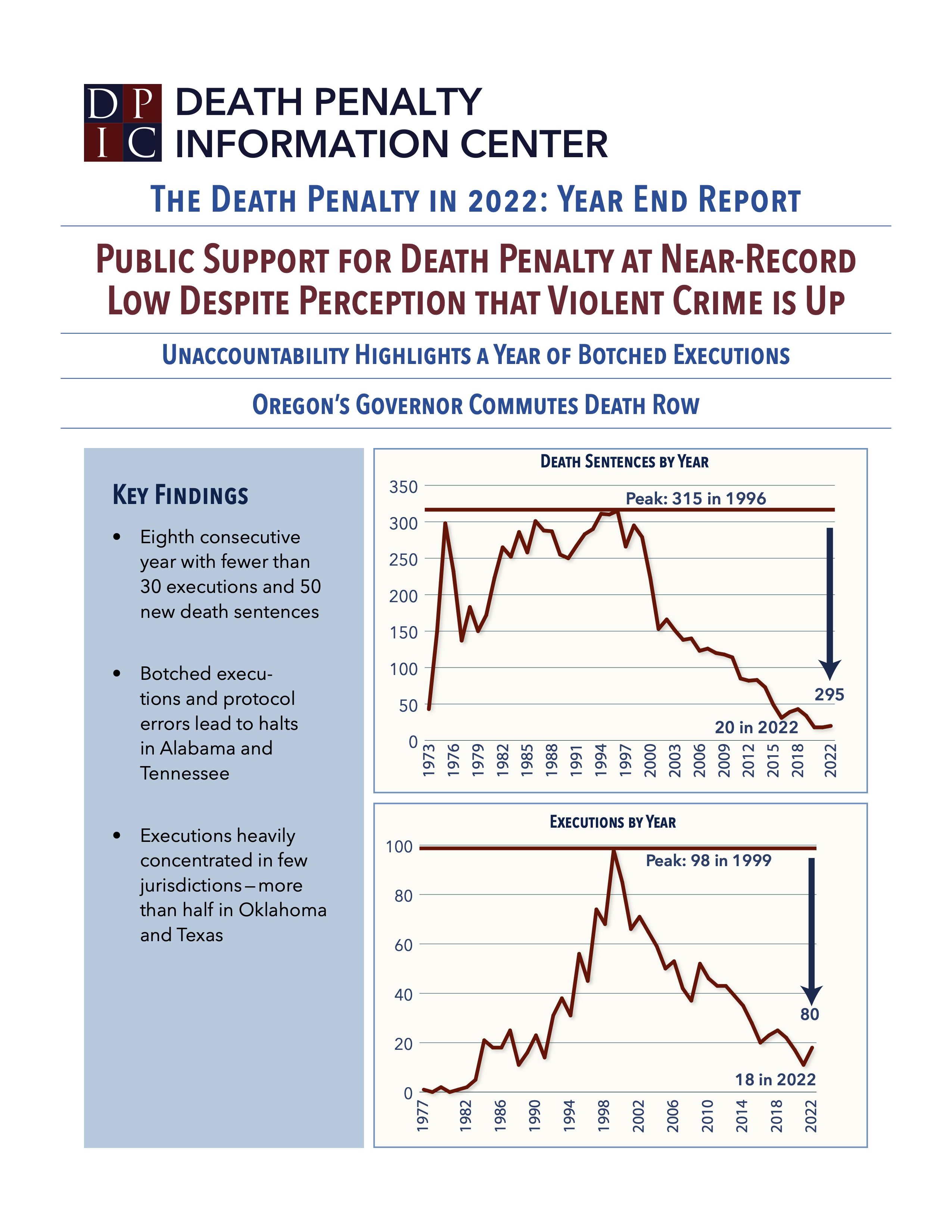 The Death Penalty in 2022: Year End Report, DPIC, December 16, 2022. Read DPIC’s press release accompanying the report.