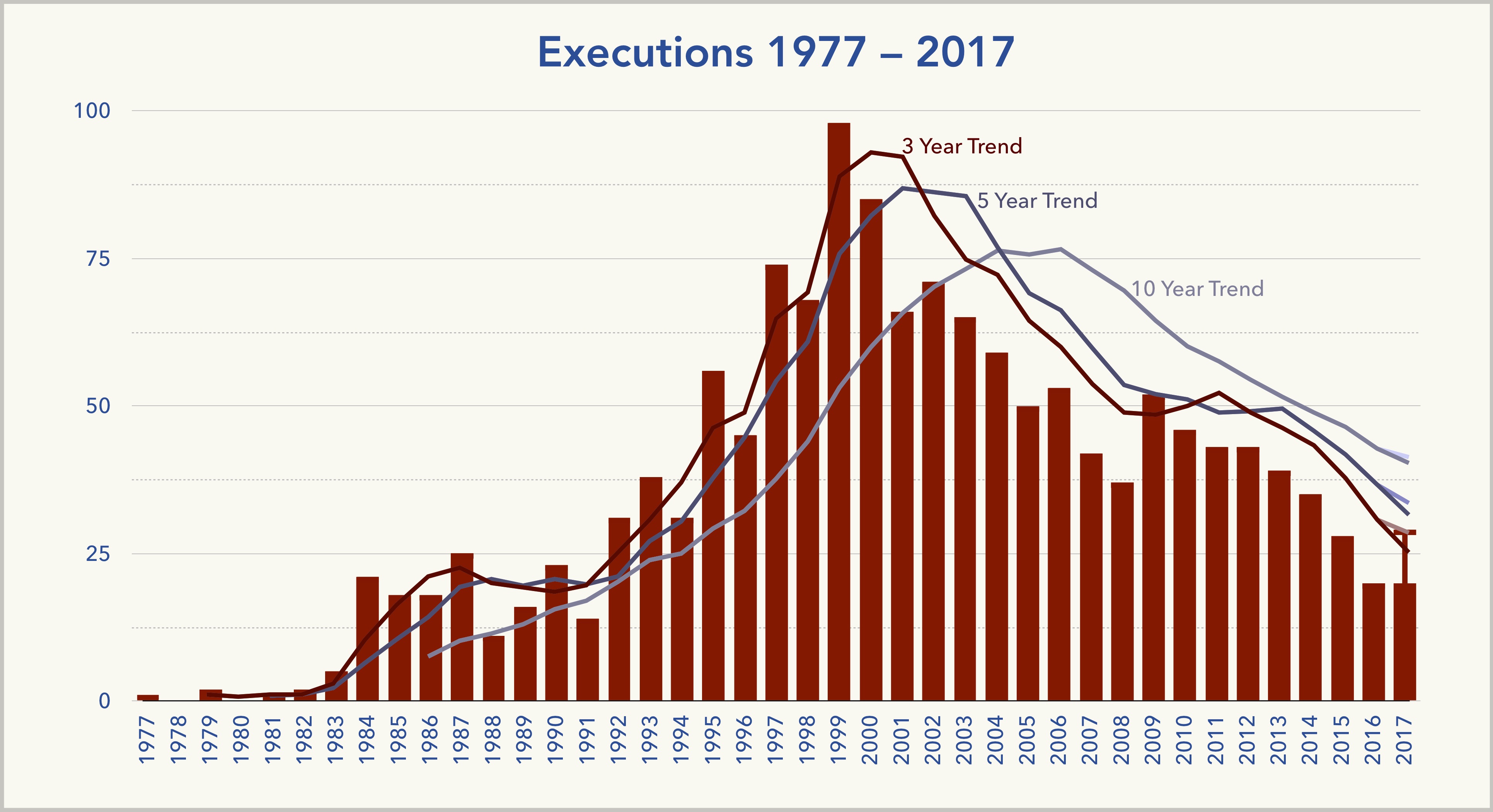 R. Wolf, Executions rise in 2017, but downward trend continues, USA Today, October 22, 2017; M. Chammah and T. Meagher, A Long Decline in Executions Takes a Detour, The Marshall Project, October 18, 2017.