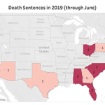 Six months into 2019, it appears that, for the fifth consecutive year, there will be fewer than 50 new death sentences and fewer than 30 executions. The Death Penalty Information Center has documented 14 new death sentences formally imposed in the first half of 2019, with eight other jury recommendations for death awaiting final judicial action. At this point in 2018, 27 new death sentences had been formally imposed. Nine states, six of them in the South, have formally imposed new death sentences, but to date no state has imposed more than two. No county has imposed more than one new death sentence.