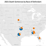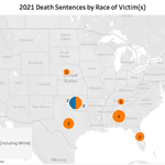The majority (61.1%) of people sentenced to death in 2021 were either Black or Latinx. No white defendant was sentenced to death in trial proceedings that did not involve any white victim. Alabama, Texas, and Oklahoma collectively accounted for 61.1% of the year’s new death sentences.