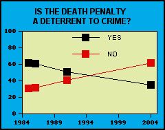 In less than 20 years, public opinion regarding the deterrent effect of the death penalty — long the backbone of its support — has reversed itself. In 1986, 61% believed the punishment to be an effective deterrent. In 2004, 62% believed that the death penalty did not deter crime.