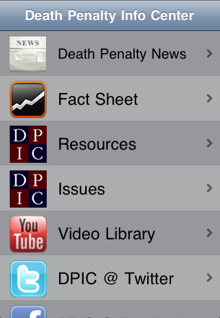 The Death Penalty Information Center is proud to present a new mobile application for the iPhone, iPad, and iPod Touch. This FREE application provides access to the most frequently used resources on DPIC’s main website, including our Fact Sheet on the Death Penalty, our Execution Database, and the most recent death penalty news from around the country. Click here to download the mobile application through iTunes. Users may also download the mobile application directly from the App Store on their mobile device by searching for “DPIC” or “Death Penalty Information Center.” You may also visit our Multimedia page for other resources, including our general Web app for mobile devices and our audio podcast series, DPIC on the Issues.