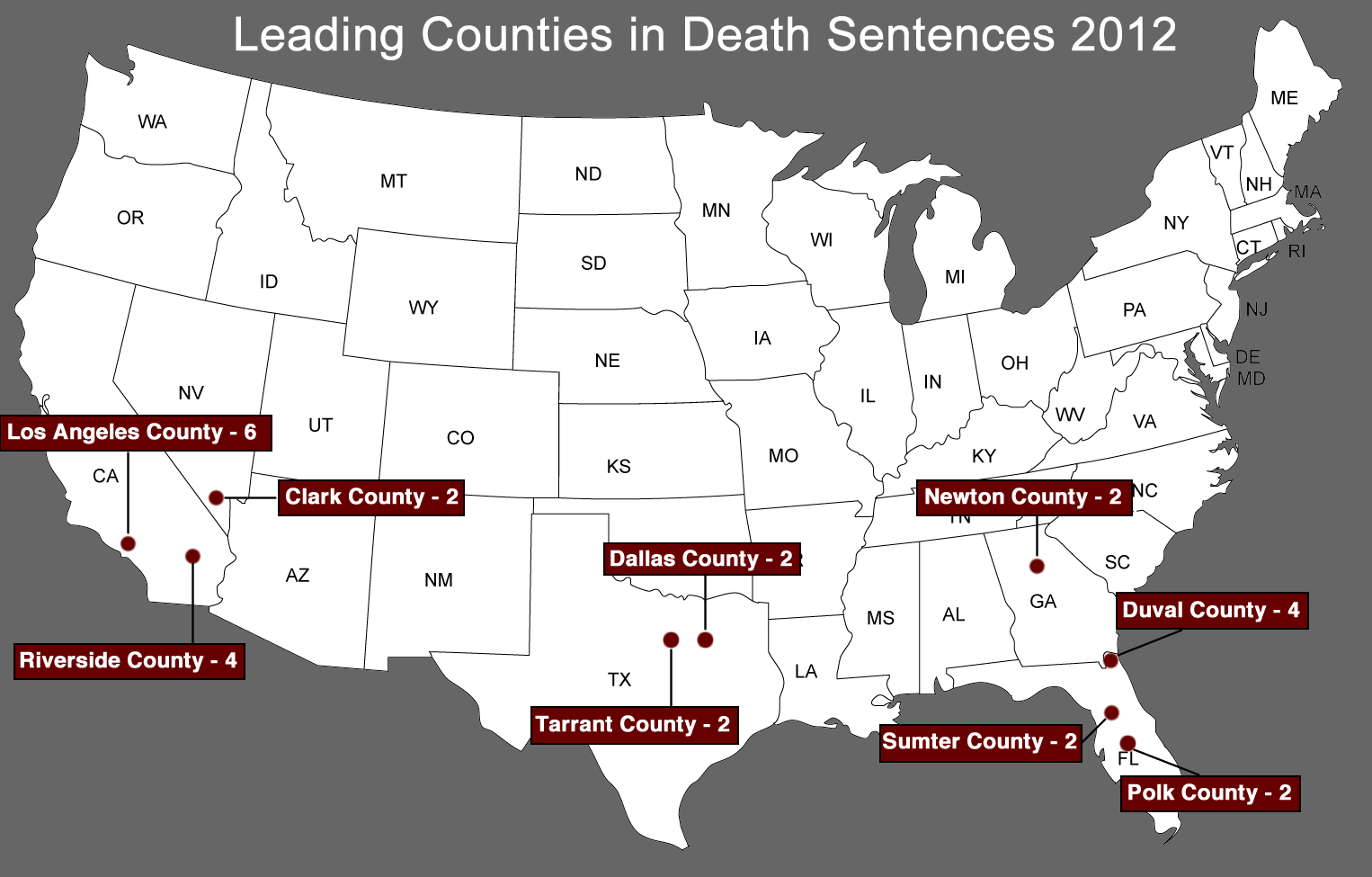 Click to enlarge. (graphic: 50 other counties produced 1 death sentence each)