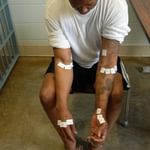 Romell Broom dis­plays the 18 dif­fer­ent loca­tions in which Ohio exe­cu­tion per­son­nel unsuc­cess­ful­ly attempt­ed to set an intra­venous line to exe­cute him in September 2009.