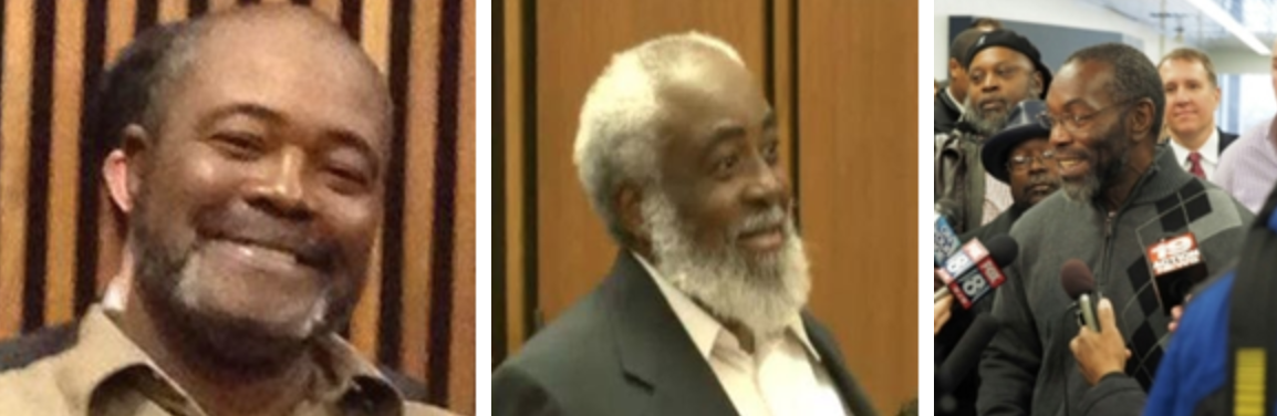 The city of Cleveland will pay a record $18 million dollars to settle a civil rights lawsuit by three former death-row prisoners who, as a result of police misconduct, spent more than a combined 80 years imprisoned for a murder they did not commit. Kwame Ajamu (pictured, left), his brother Wiley Bridgeman (pictured, center), and Rickey Jackson (pictured, right) were convicted in 1975 of the robbery and murder of Harold Franks based on the coerced false testimony of a 12-year-old boy, Eddie Vernon. Police also fabricated evidence and withheld evidence of the men’s innocence.