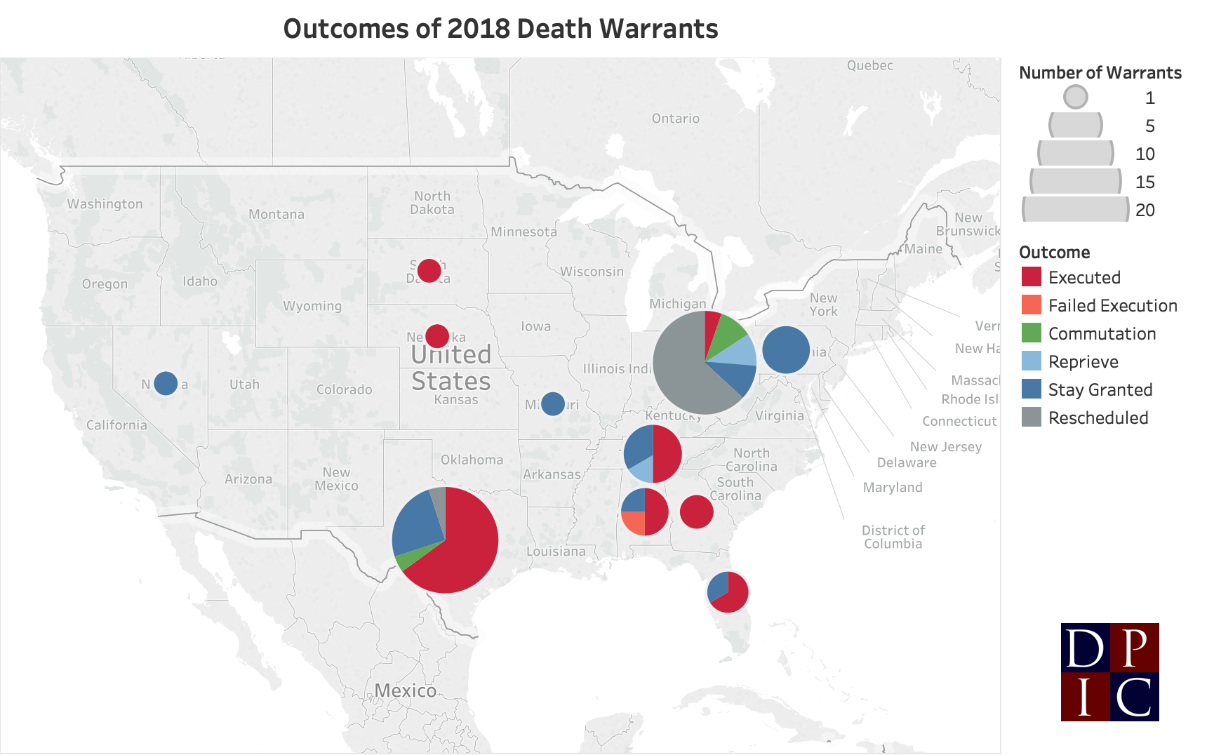 62 execution dates were scheduled in 11 states in 2018.