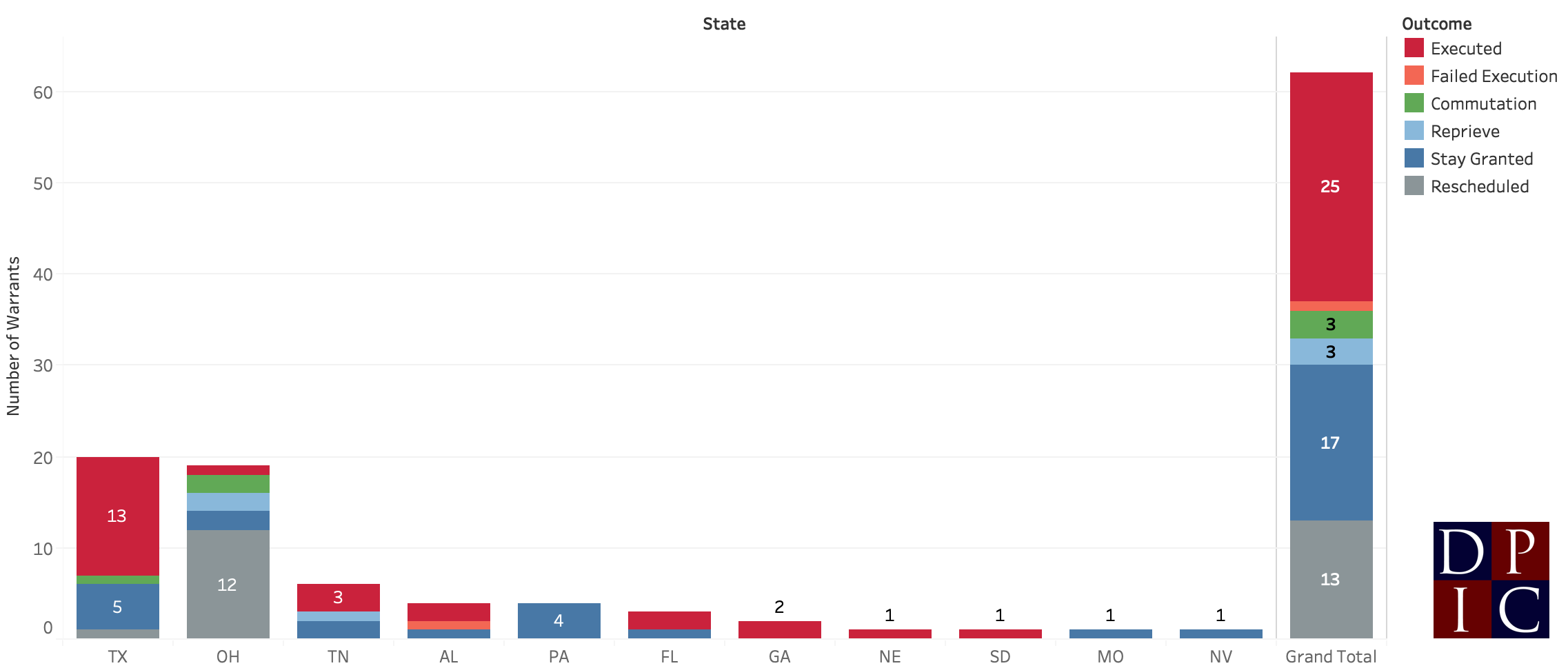 There were 25 executions carried out in 8 states.