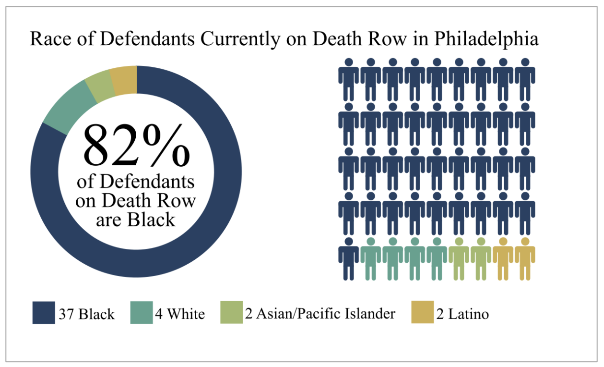 The Philadelphia D.A.’s brief also said that its study “revealed equally troubling data” regarding the race of the 45 Philadelphia prisoners who remain on Pennsylvania’s death row. 82% of those prisoners, the brief said, are black; 91% are people of color.