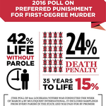 - 71% favor changing state law to include the sentencing option of life without parole
