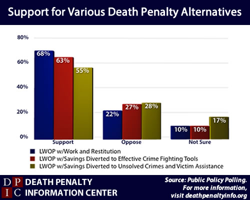 Public Policy Polling surveyed 600 North Carolinians by telephone between February 7 – 10, 2013. Forty-four percent (44%) of respondents identified themselves as conservative; 65% of those who called themselves “somewhat conservative” and 50% of those who self-identified as “very conservative” supported switching to life in prison without parole. North Carolina has not had an execution since 2006.