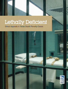 (“Lethally Deficient: Direct Appeals in Texas Death Penalty Cases,” Texas Defender Service, September 20, 2016; M. Ward, “Report: Texas death penalty appeals process deeply flawed,” Houston Chronicle, September 20, 2016; San Antonio Express-News, September 20, 2016; Press Release, “New Report Examines Texas Death Penalty Direct Appeal Process and Practices,” Texas Defender Service, September 20, 2016.) See Representation.