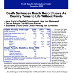 The year 2005 may be remembered as the year that life without parole became an acceptable alternative to the death penalty in the U.S. Texas became the 37th out of 38 death penalty states to adopt this option for its juries. New York’s legislature did not restore the death penalty after it was found unconstitutional, leaving life without parole as the punishment for capital murder. Across the country, the number of death sentences dropped to record lows and some of…