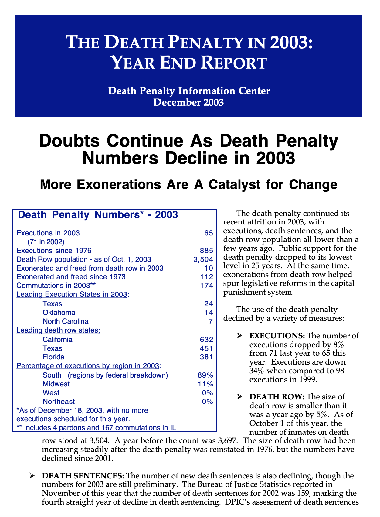 The Death Penalty in 2003: Year End Report