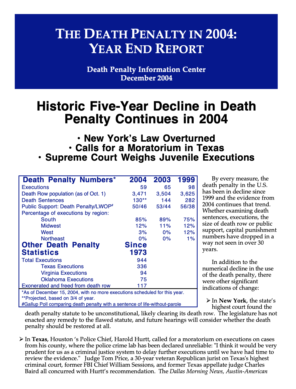 The Death Penalty in 2004: Year End Report