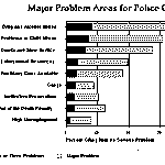 Other areas which were cited as major problems included crowded courts and slow justice. On the other hand, ineffective prosecution and high unemployment were only rated as minor problems. Again, the death penalty ranked near the bottom as a serious concern for law enforcement officers.