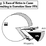 Following the Furman decision, legislatures adopted death sentencing procedures that were supposed to eliminate the influence of race from the death sentencing process. However, evidence of racial discrimination in the application of capital punishment continues. Nearly 40% of those executed since 1976 have been black, even though blacks constitute only 12% of the population. And in almost every death penalty case, the race of the victim is white. (See Fig. 3). Last year alone, 89% of the death sentences carried out involved white victims, even though 50% of the homicides in this country have black victims.[13] Of the 229 executions that have occurred since the death penalty was reinstated, only one has involved a white defendant for the murder of a black person.