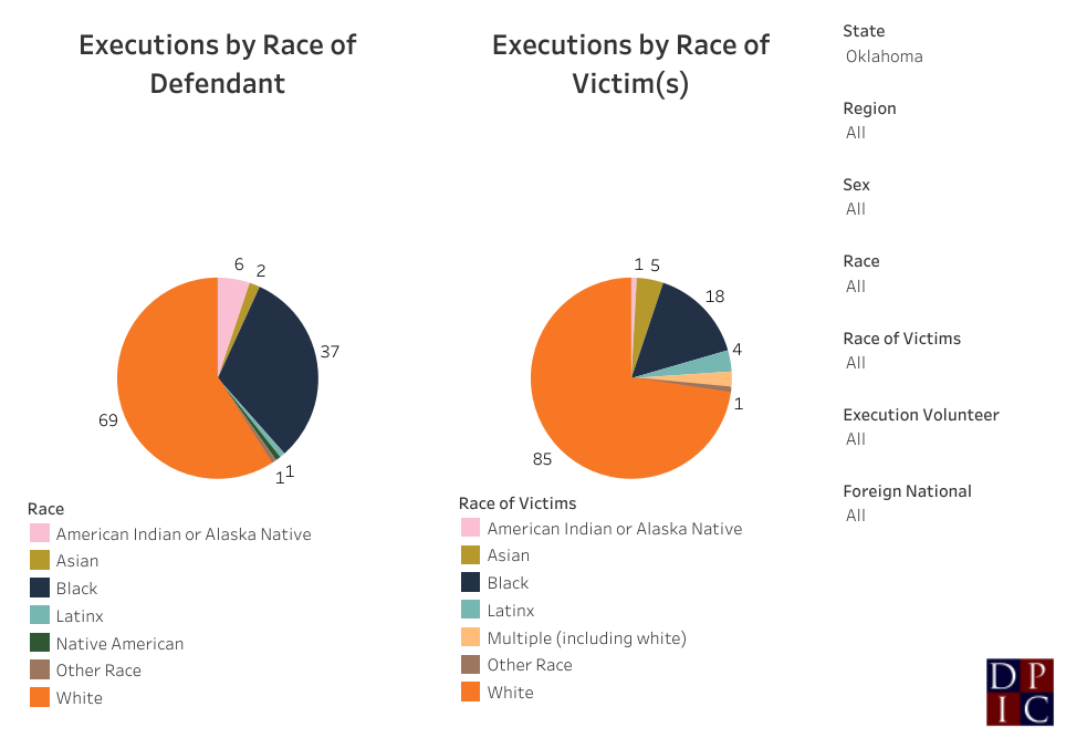 Since 1976, 41% (48/117) of the people Oklahoma has executed have been people of color. Black people make up the majority of the people of color executed in the modern era of the death penalty (37/48).