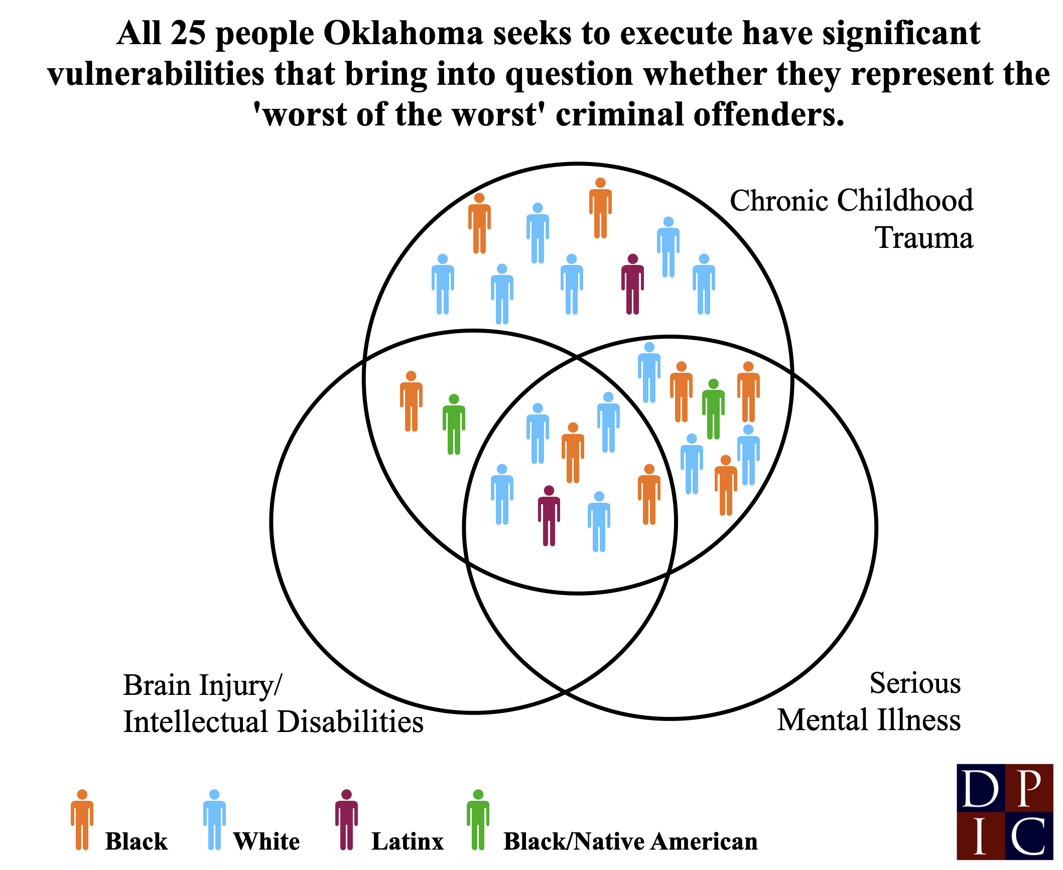 The men scheduled for execution have been subjected to a multitude of adverse childhood experiences, including serious physical, emotional, and/or sexual abuse. Several have significant evidence of innocence. Seventeen of the 25 were sentenced to death in Oklahoma or Tulsa counties, both of which are national outliers as a result of their voracious execution rates.