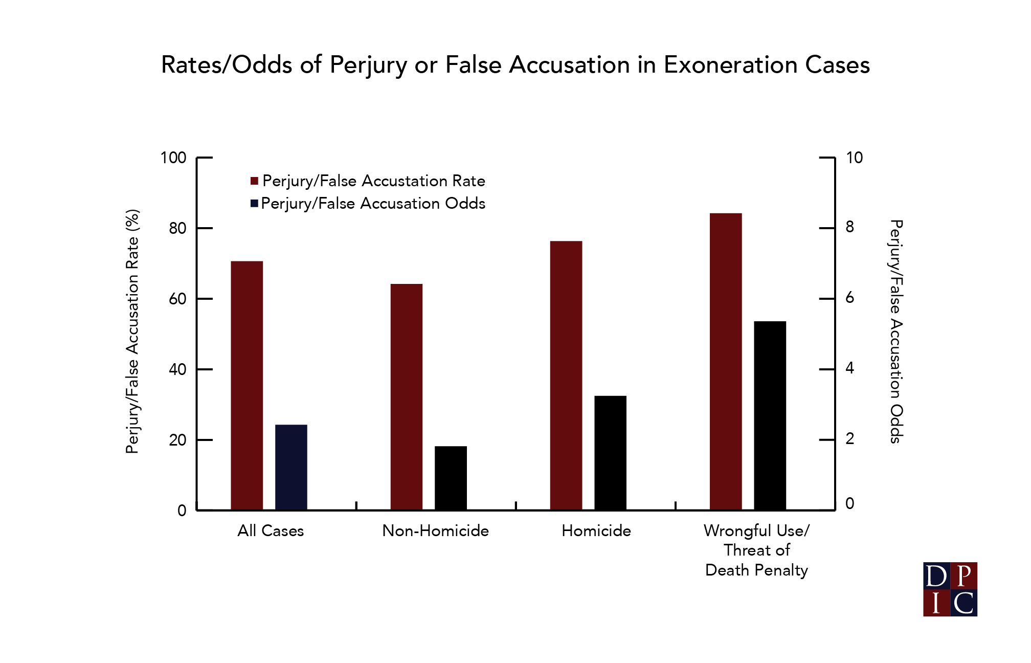 - The odds that Perjury or False Accusation contributed to a wrongful conviction more than doubled (2.2 times higher) when the death penalty was pursued or its use was threatened.