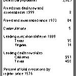 September The 100th execution in Texas under the administration of Gov. George W. Bush took place. Texas leads the country with the most executions this year (35) and accounts for one-third of all executions in the country since the death penalty was reinstated (199 out of 598). No other state or governor in recent times comes close to this number of executions. Virginia has had the second largest number of executions since reinstatement, 73, including 14 this year. As a percentage of its population and as a percentage of its death row, Virginia executes inmates at a higher rate than Texas.