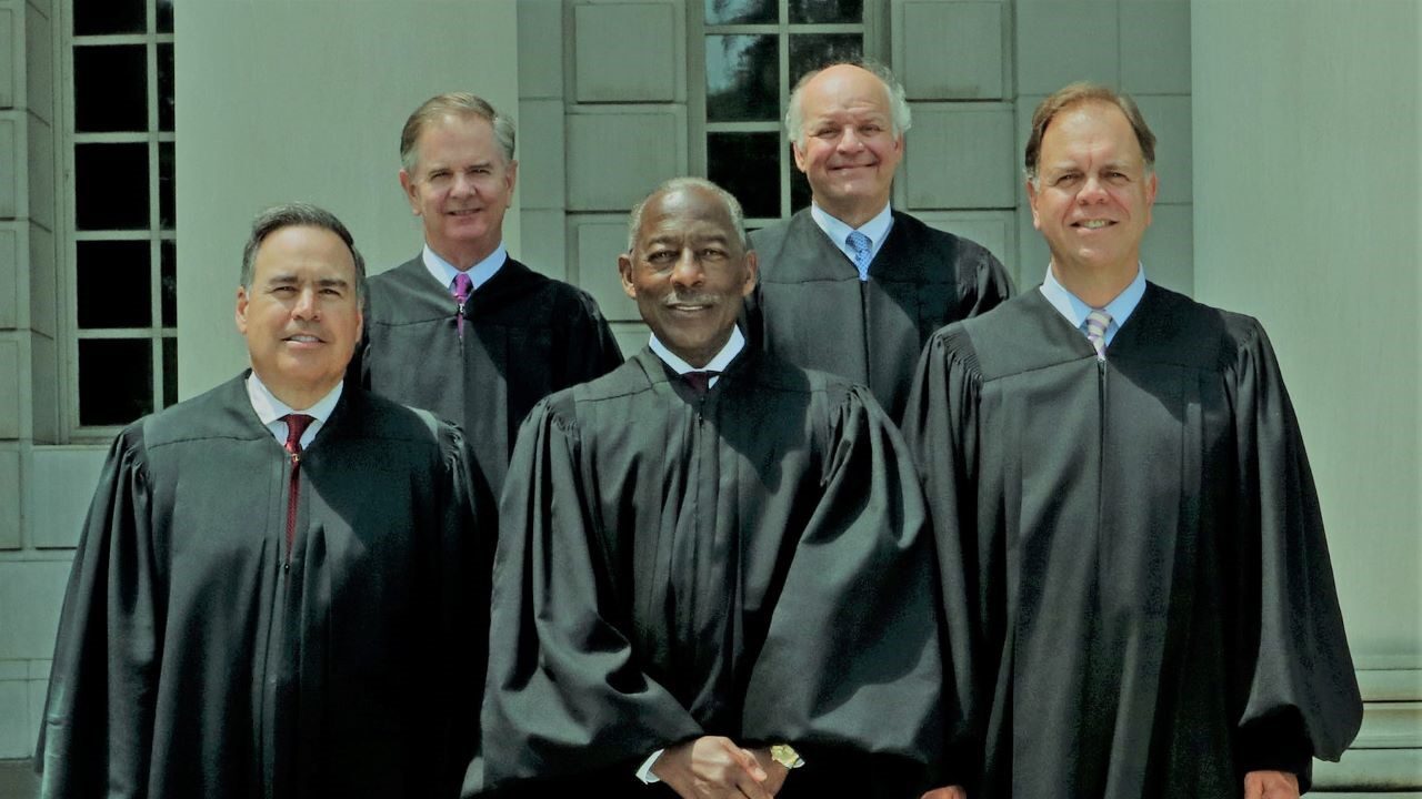 In a lengthy exchange with Justice John Cannon Few (far right), Mr. Lambert conceded that the state did not test its lethal injection drugs. Justice Few responded with concern, musing that “surely the state would verify that this is the right drug to use” in a time when stories have emerged of states obtaining execution drugs from sketchy or illegal sources. Mr. Lambert replied by saying that the court had never required the state to prove the drugs’ provenance, but Justice Few noted that “the atmosphere has changed since 1995” and there are now serious doubts about the quality and sources of lethal injection drugs. Chief Justice Beatty asked whether Mr. Lambert would object to independent testing, and Mr. Lambert said yes, arguing that independent testing would draw additional people under the umbrella of the shield law and could “alter the shelf-life” of the drugs.