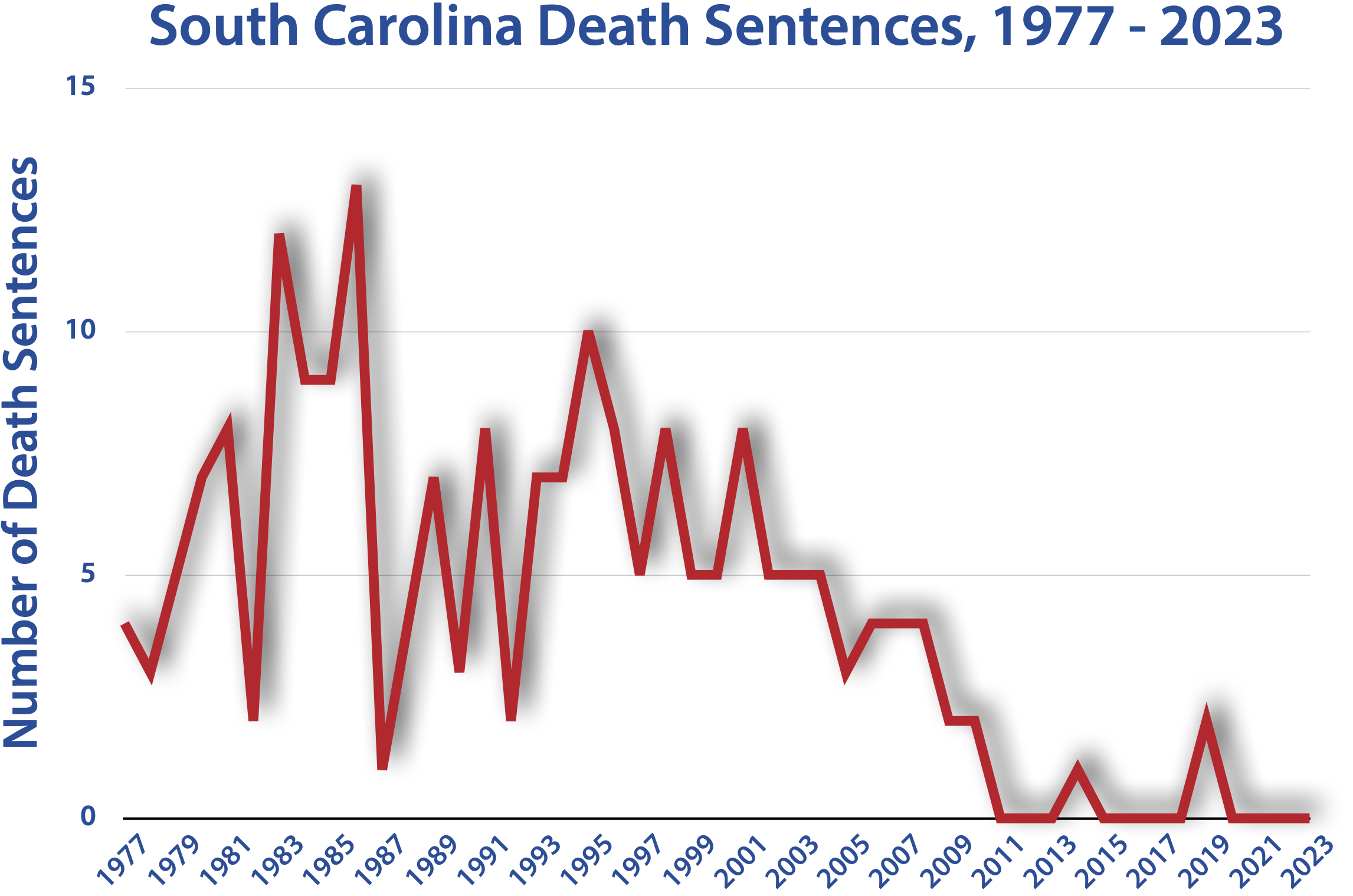 2021 — The South Carolina leg­is­la­ture autho­rizes the use of the elec­tric chair and fir­ing squad as the state reach­es a decade with­out any execution.
