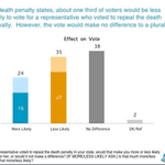 In states with the death penalty, a plurality of voters said it would make no difference in their vote if a representative supported repeal of the death penalty; and a majority (62%) said either it would make no difference (38%) or they would be more likely to vote for such a representative (24%).