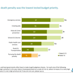 - Costs emerged as an important concern for a strong majority of Americans. Sixty-eight percent said cost was a very or somewhat convincing argument against the death penalty. Voters ranked emergency services, creating jobs, police and crime prevention, schools and libraries, public health care services, and roads and transportation as more important budget priorities than the death penalty.