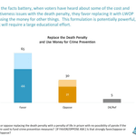 - A strong majority of respondents (65%) would favor replacing the death penalty with life with no possibility of parole if the money saved were used to fund crime prevention programs.