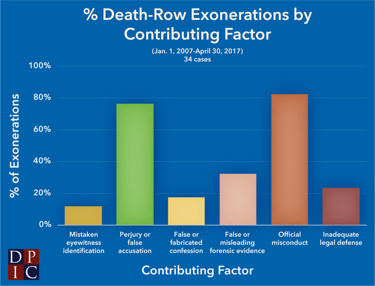 By category, the leading contributing causes of wrongful conviction in the death-row exonerations between 2007 and April 2017 were: