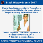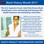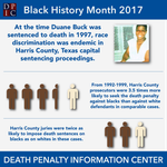 Duane Buck was sentenced to death in Harris County (Houston), Texas in 1997 after his own lawyers presented an expert witness who testified that Mr. Buck was more likely to pose a future danger to society because he is black.