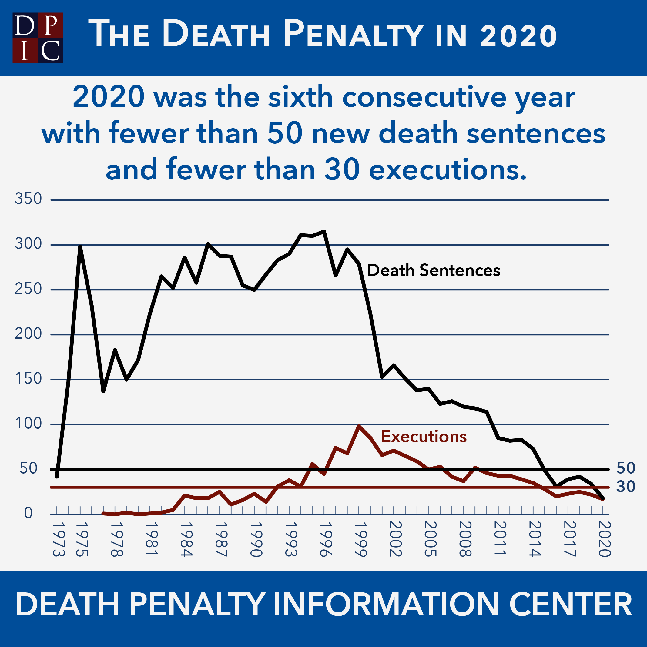Throughout January, DPIC ran our 12-part infographic series looking back on The Death Penalty in 2020. The graphics covered subjects including sentencing and execution trends, death-penalty repeal, exonerations, problematic executions, the election of reform prosecutors, and the federal execution spree, among others. You can see the entire series on the Death Penalty Information Center Facebook page at this link.