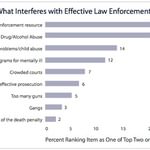 The graph above shows the responses of 500 police chiefs in the United States. Police chiefs ranked the death penalty last when asked to name one area as “most important for reducing violent crime.” Higher priorities included increasing the number of police officers, reducing drug abuse, and creating a better economy.