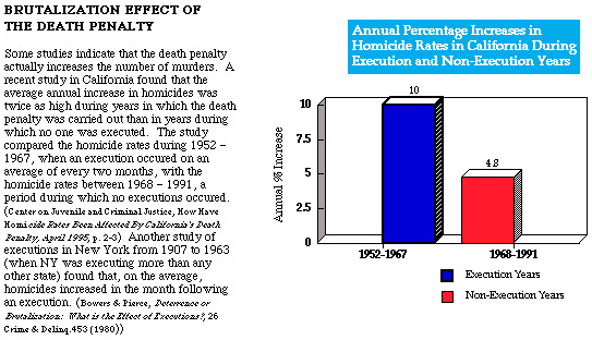 Research reported in Homicide Studies, Vol. 1, No.2, May 1997, indicates that executions may actually increase the number of murders, rather than deter murders. Prof. Ernie Thomson at Arizona State University reported a brutalizing effect from an execution in Arizona, consistent with the results of a similar study in Oklahoma.