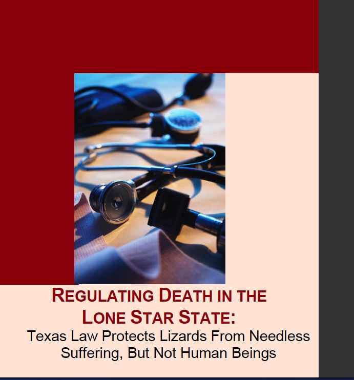 (“Regulating Death in the Lone Star State: Texas Law Protects Lizards from Needless Suffering, But Not Human Beings,” ACLU of Texas et al., March, 2011). Read full report. See Lethal Injection and Studies.