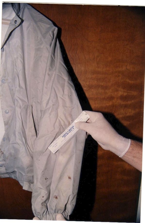 Robert Owen, an attorney for Skinner, expressed concern about the state’s losing a bloody jacket (see photo) found near the victim’s body: